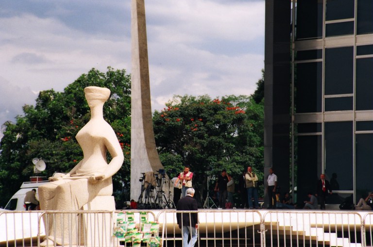 Para quem não identificou, essa foto foi feita na Praça dos 3 Poderes, em Brasília, especificamente em frente ao Palácio da Justiça – Supremo Tribunal Federal. Fiz essa foto durante um curso de fotografia e ainda usava filme… Nesse dia, o julgamento impactante era sobre a legalização do aborto. Por isso a citação do versículo, como título do post, pois a foto fez parte da exposição FotoVersículos, no Ano Paulino.